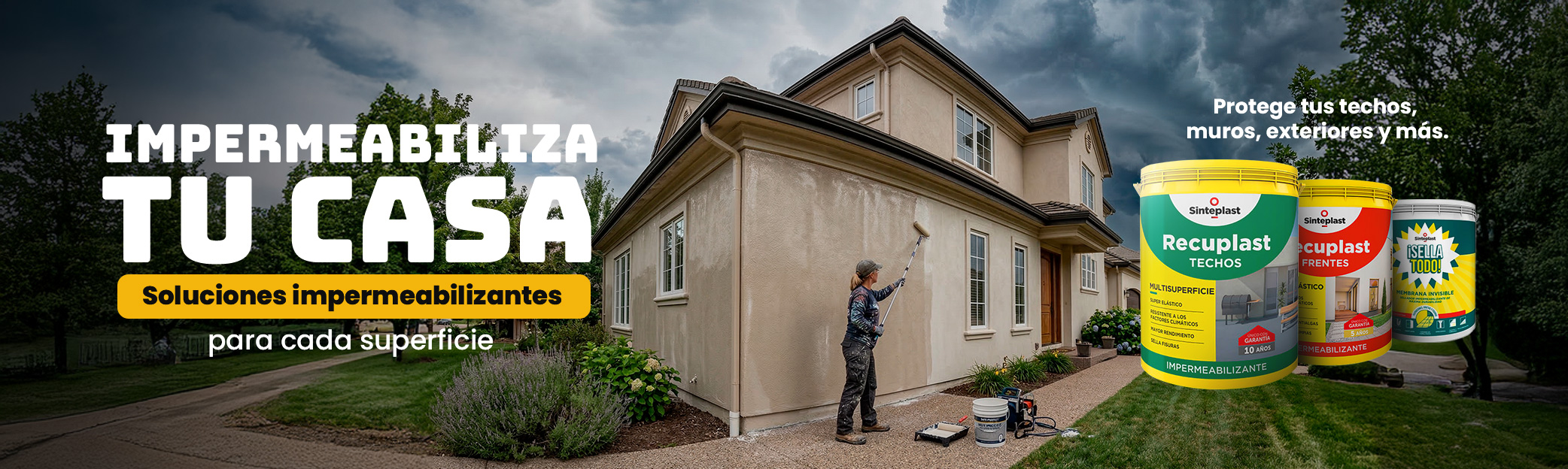 PINTURA IMPERMEABILIZANTE EXTERIOR BLANCO Y COLORES PASTELES 4L